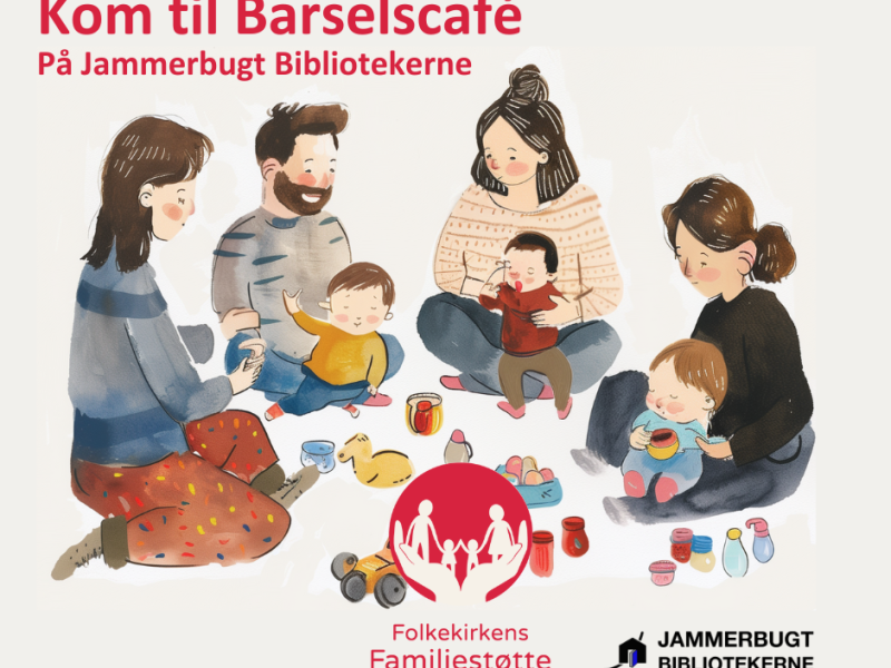 Folkekirkens Familiestøtte holder barselscaféer i samarbejde med Jammerbugt Bibliotekerne i Aabybro, Fjerritslev, Pandrup og Brovst. I barselscaféerne kan du møde andre forældre med børn i alderen 0-2 år. Vi starter hver gang med et par sange sammen med børnene, og herefter sætter vi fokus på et emne, som er relevant for småbørnsforældre. Der er også god tid til hyggesnak og leg.